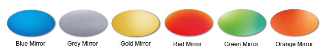A reflective silver optical coating on the outside of the lenses to make them appear like small mirrors View Colors